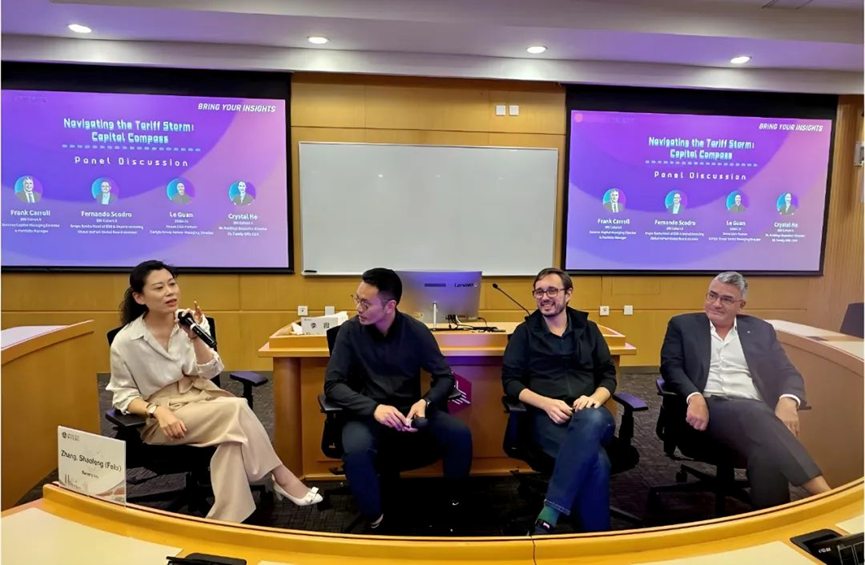 This roundtable brought together participants from diverse sectors—energy, finance, and tech. Speakers included Frank Carroll (Managing Director & Portfolio Manager, Oaktree Capital), Fernando Scodro (Board Member, Global ImPact), Crystal He (Executive Director & CEO, DL Family Office), and Le Guan (Partner, Ocean Link). Discussions focused on navigating investment in a world of tariff-driven uncertainty.